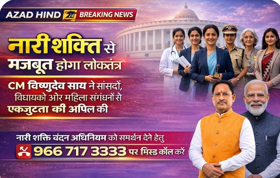 - नारी शक्ति की भागीदारी से मजबूत होगा लोकतंत्र, प्रतिनिधित्व को नई ऊंचाई देने का समय : मुख्यमंत्री विष्णु देव साय