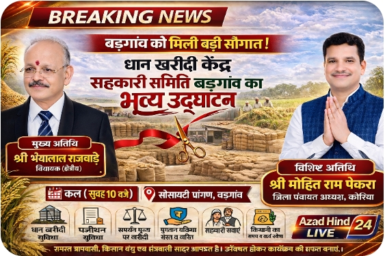 - बड़गांव को मिली बड़ी सौगात: कल सुबह 10 बजे होगा धान खरीदी केंद्र सहकारी समिति का भव्य उद्घाटन