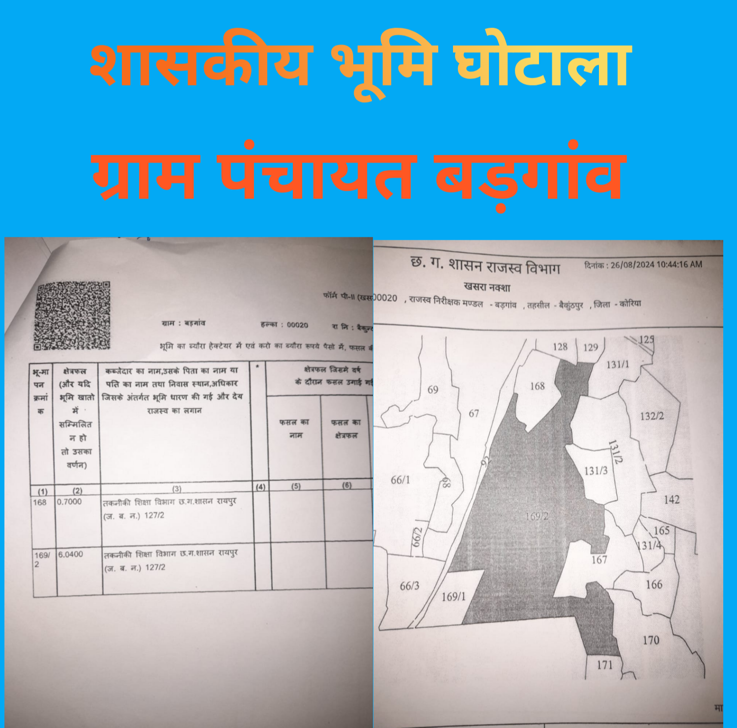 सरपंच अशोक कुमार मिंज के कार्यकाल में शासकीय राजस्व भूमि का हुआ घोटाला : सरपंच एक भी कब्जाधारी के ऊपर नहीं कराई कार्यवाही
