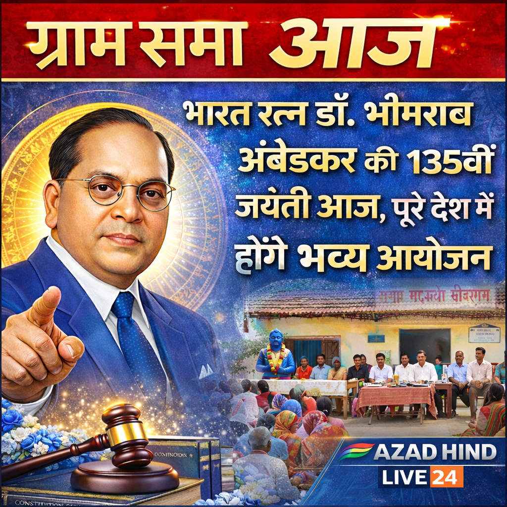 नमस्कार , हमारे न्यूज पोर्टल - मे आपका स्वागत हैं ,यहाँ आपको हमेशा ताजा खबरों से रूबरू कराया जाएगा , खबर ओर विज्ञापन के लिए संपर्क करे 8103696901 , 6266418989 , 6266256782 , 8226053208 ,हमारे यूट्यूब चैनल को सबस्क्राइब करें, साथ मे हमारे फेसबुक को लाइक जरूर करें , भारत रत्न डॉ. भीमराव अंबेडकर की 135वीं जयंती आज, पूरे देश में होंगे भव्य आयोजन – Azad Hind Live24